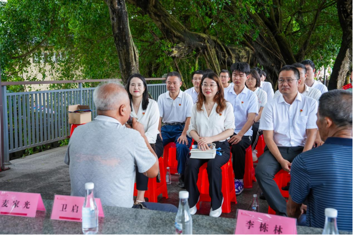 慰问之后,一场极具感染力的“初心之约”在都斛镇委党校的大榕树下温暖启幕。三位精神矍铄的老党员受邀担任主讲人,他们以亲身经历为教材,以朴实无华的语言共同带来了一堂“榕树下的党课”。他们深情回顾了在党的领导下艰苦奋斗的峥嵘岁月,将厚重的历史与不变的初心娓娓道来。现场的党员们围坐静听,仿佛置身于历史的画卷之中,在斑驳的树影下,新老党员的“红”心同频共振,共同感悟信仰的力量,汲取前行的智慧。
