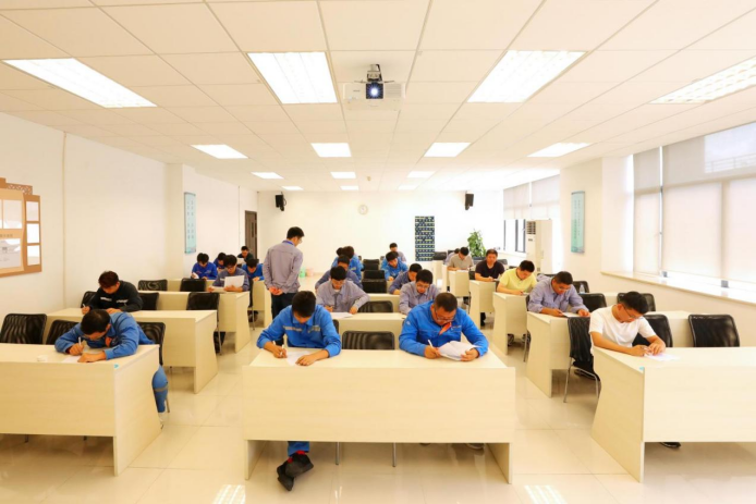 为全面考察选手“理论功底+实操能力”的综合能力,竞赛设置了双重考核环节。理论知识考试紧扣离心泵检修核心原理与行业规范,以考促学,夯实专业基础;实践操作环节则聚焦泵组联轴器拆装、轴系对中及中心验收三大关键工序,高度模拟真实工作场景,综合检验选手的精准操作能力、故障分析能力与团队协作素养。