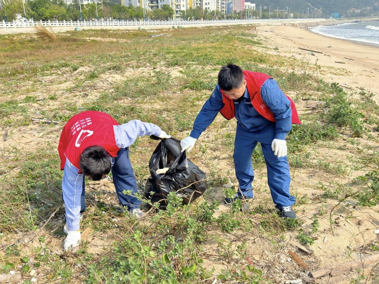 在“青春护海”活动现场,青年志愿者们身着统一志愿服装,手持清洁工具,分组沿着海岸线有序开展垃圾清理工作。大家弯腰俯身,重点捡拾塑料袋、饮料瓶、渔网碎片等海洋垃圾,细致分类后集中清运。面对散落的细小垃圾,志愿者们徒手捡拾、不留死角,用耐心和责任心为海滩“美容”。参与活动的青年志愿者表示,此次净滩行动既锻炼了实践能力,也进一步增强了自身的社会责任感和环保意识。